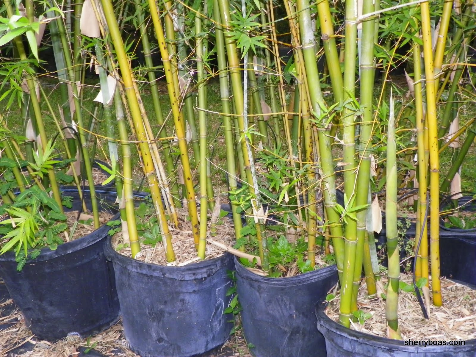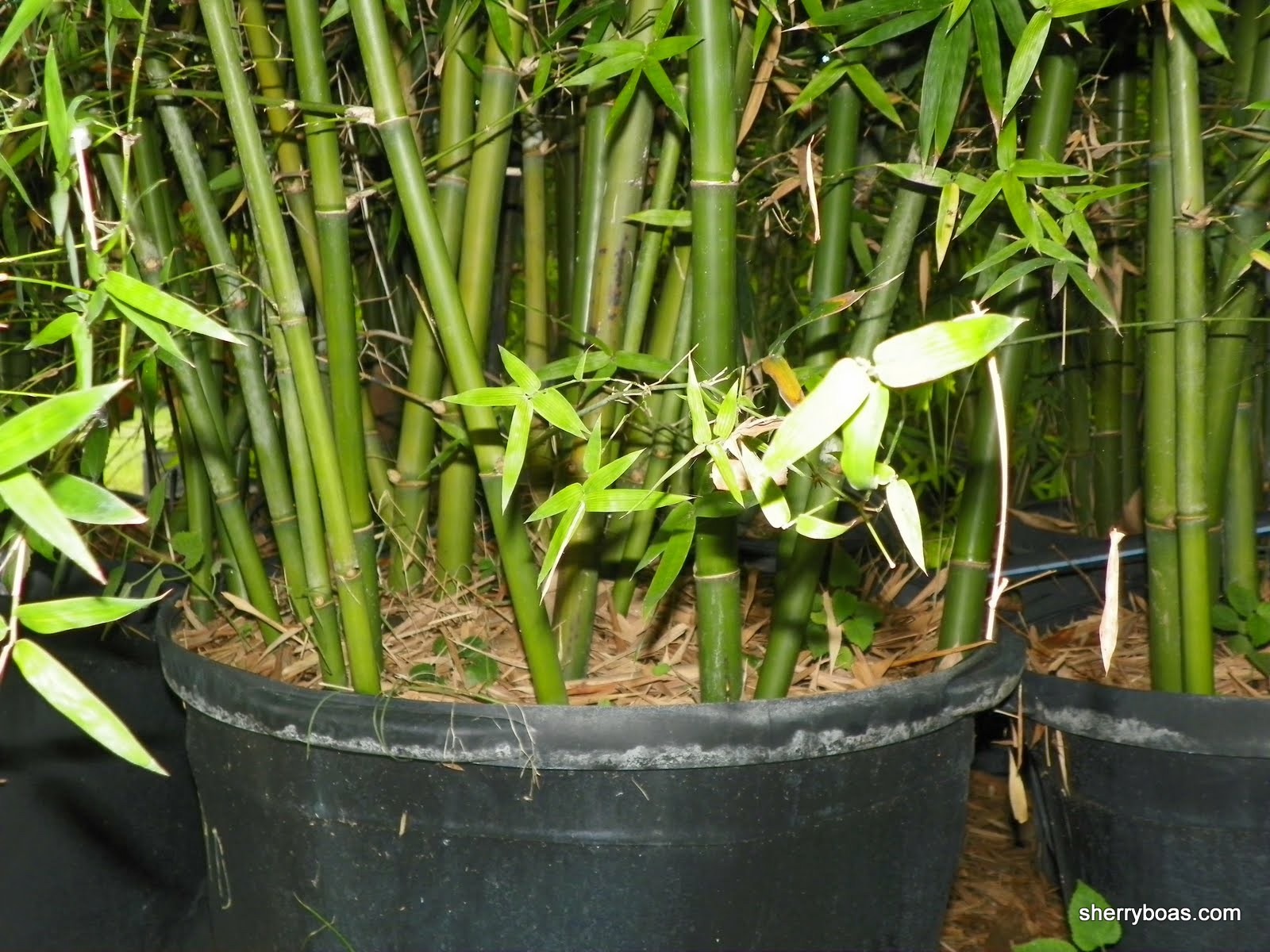 | Very full, tall Oldhamii – also called Giant Timber – in 30- and 50-gal containers |