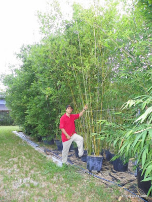 | Our son Timmy is almost 6′ tall. These 15- and 30-gal Graceful Bamboos are between 15′ and 18′ tall |