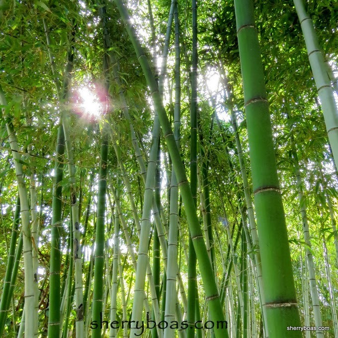 | Sun shining through a mature grove of vivax timber bamboo |