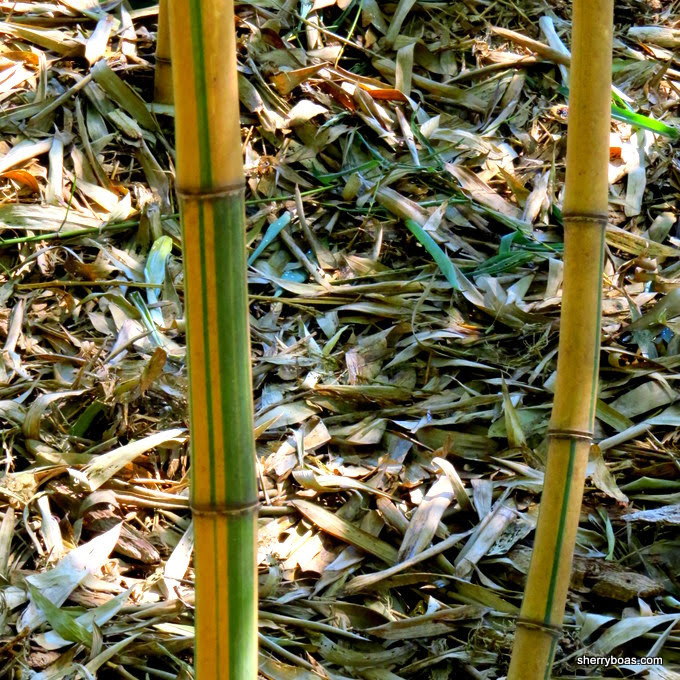 Like Phyllostachys vivax, the two new cultivars also produce tall (30′ to 70′), large-diameter (3 to 6 inch) canes with black rings around each culm section node. The difference is that while Phyllostachys vivax has beautiful solid green canes that fade as they age to a paler whitish green, Green-gold vivax produces green canes with vertical gold stripes while Gold-green vivax has golden canes with vertical green stipes.