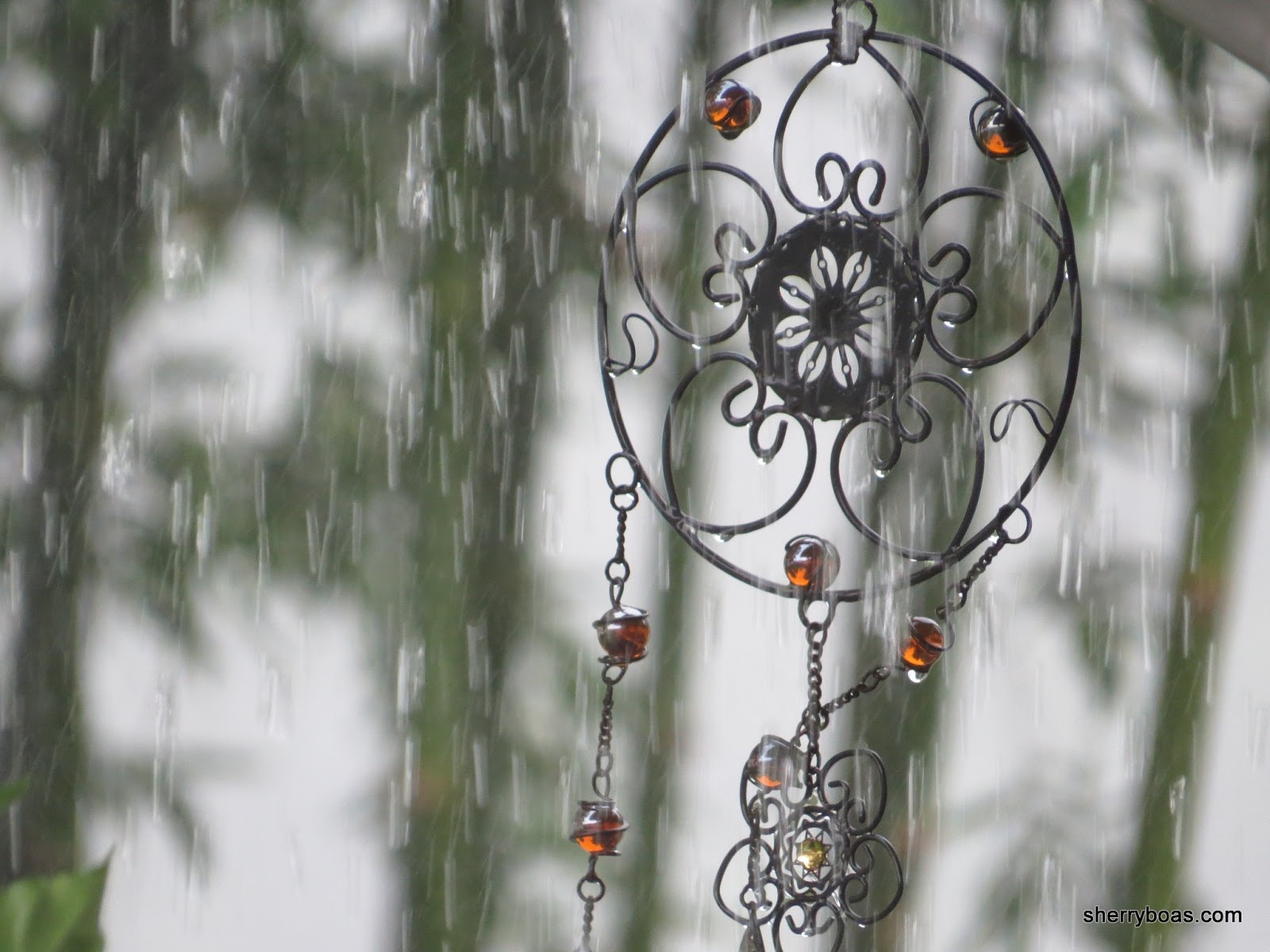 | Bamboo in the background…wind chimes in the foreground…rain all around |