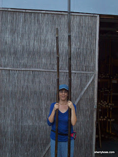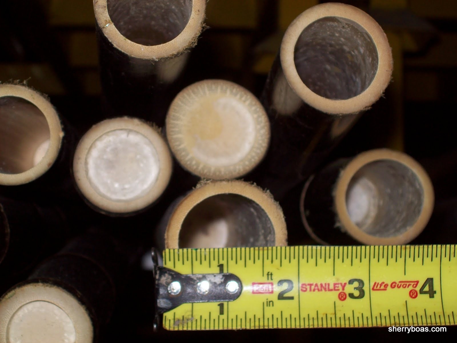 Black bamboo poles tend to run slightly smaller than their named diameters.  Shown above are several 1.75″ diameter poles and although the one being measured runs true to size, some of the other poles appear to have  somewhat smaller diameters.